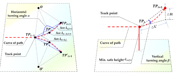 α=arccos(Li−1,i2+Li,i+12−Li−1,i+122×Li−1,i×Li,i+1)≤amax\alpha=\arccos\left(\frac{L_{i-1,i}^2+L_{i,i+1}^2-L_{i-1,i+1}^2}{2\times L_{i-1,i}\times L_{i,i+1}}\right)\leq a_{\max} α=arccos(2×Li−1,i×Li,i+1Li−1,i2+Li,i+12−Li−1,i+12)≤amax