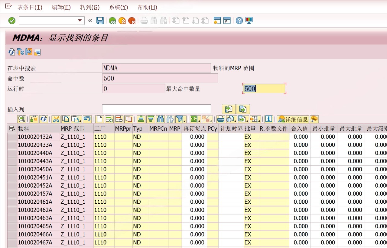 SAP系统有标准表MDMA存储mrp区域和mrp维护的类型: