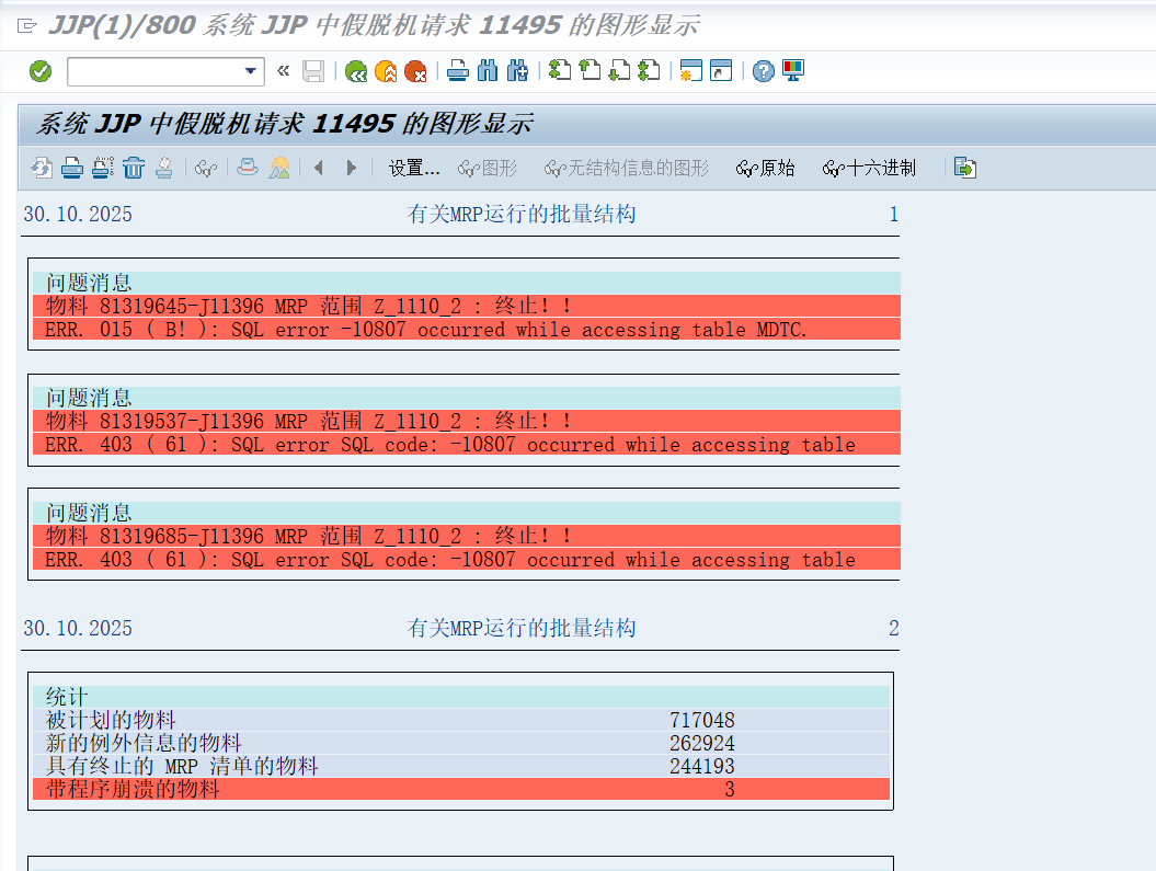 业务背景:在执行全局mrp的时候,系统报错如下: