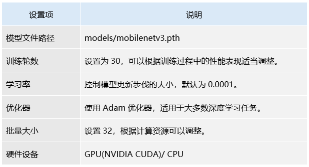 以下是关于MobileNetV3模型训练过程中的配置文件和超参数设置,并通过配置文件以及相关参数进行训练设置。