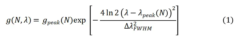 λpeak(N)为增益峰值波长,随N增大而蓝移,满足