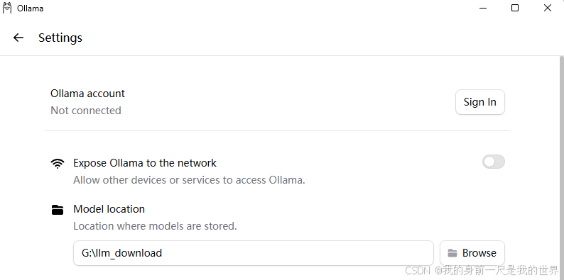 第二步:设置LLM的下载路径,如下图,我选择把LLM安装在G盘中。