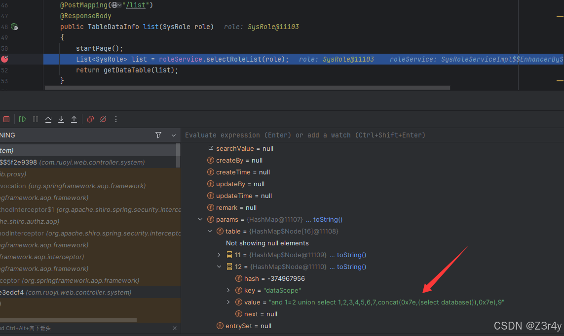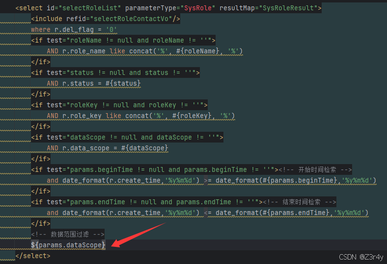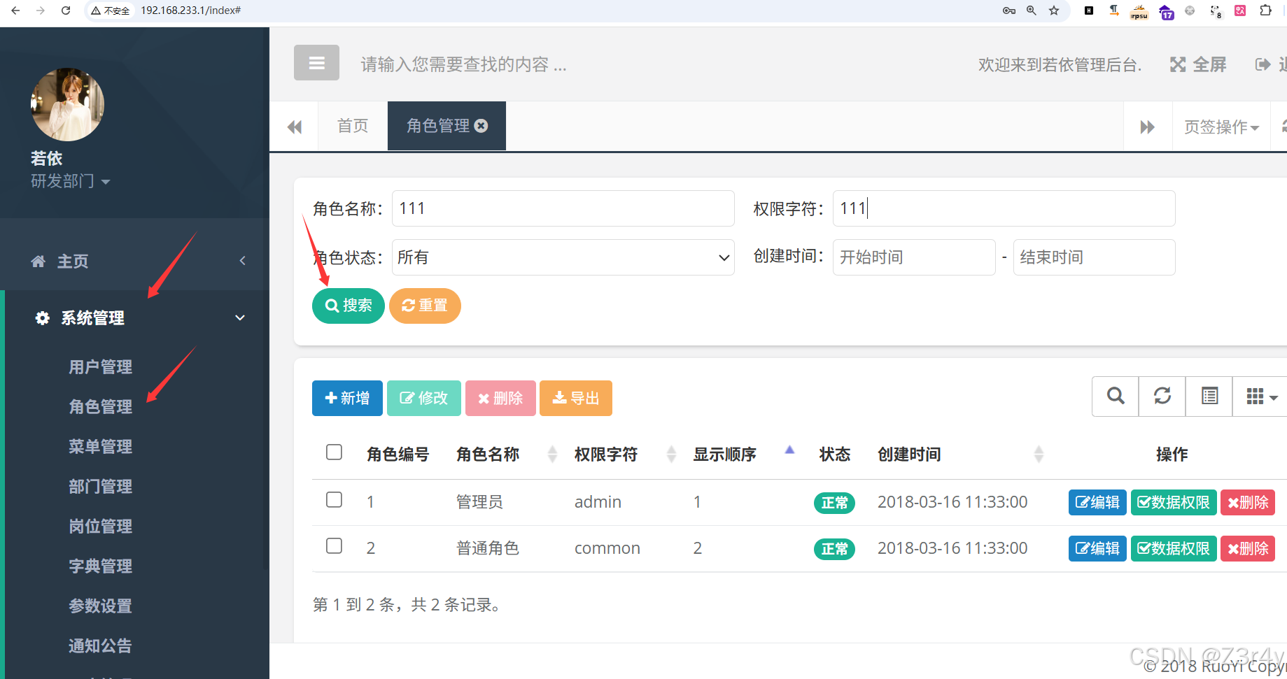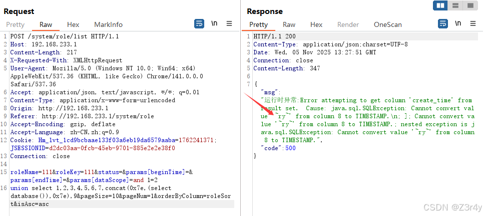 roleName=111&roleKey=111&status=¶ms[beginTime]=¶ms[endTime]=¶ms[dataScope]=and 1=2