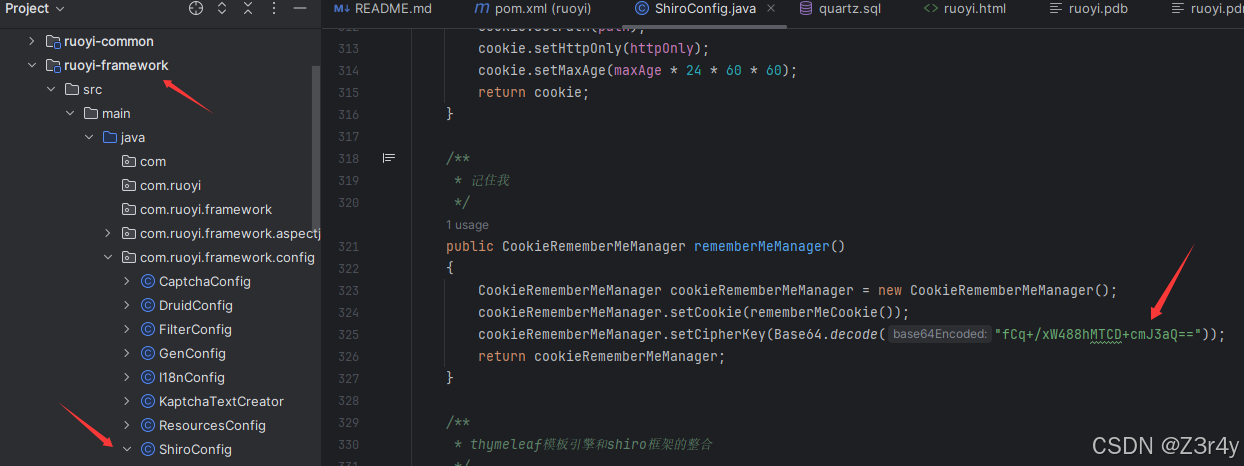 硬编码了密钥,拿到密钥后即可用任意恶意序列化数据进行Remember Me字段构造