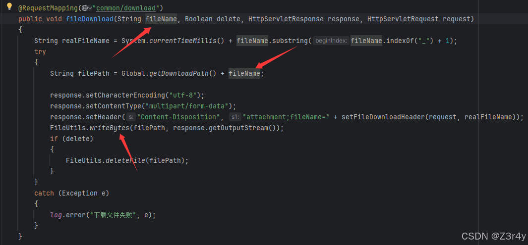 逻辑很简单,就是接收一个可控的filename参数,然后对返回的文件名做一些随机化处理