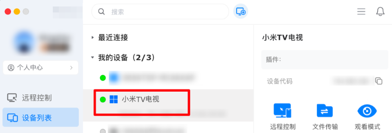 同样是需要先确保在TV版中,找到ToDesk并登录;待设备成功上线可连后,在PC端客户端设备列表界面中找到目标TV电视。