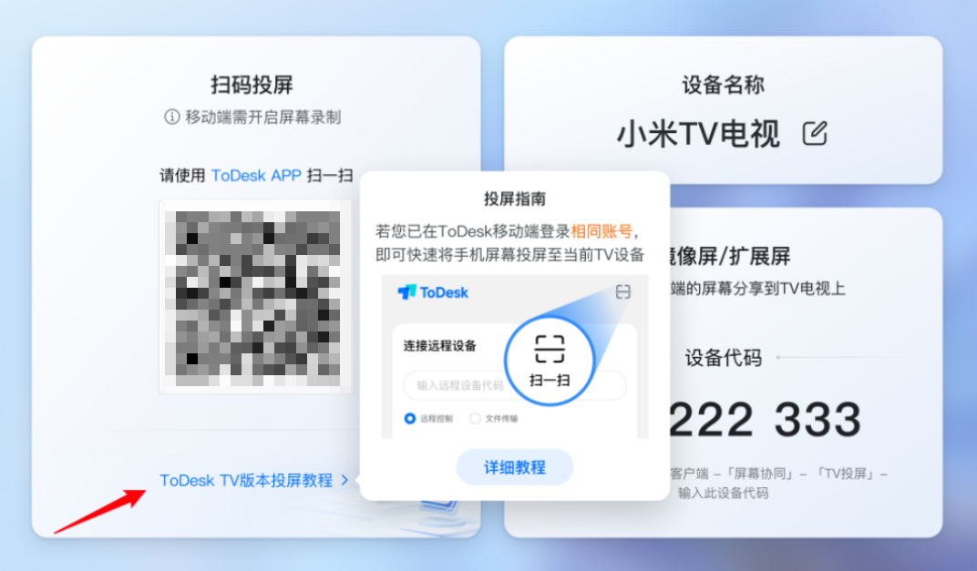 如果是首次使用,可以点击投屏指南来查看详细教程,获悉更为具体的操作流程。