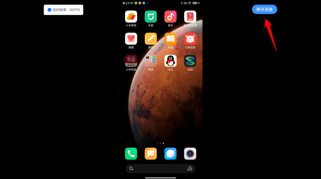 效果如图所示,小屏内容映射到TV大屏上呈现就完成了。例如生活中需要跟着直播跳瘦身操、工作中需要展示手机端广告位呈现效果等情况就能更加专业且高效的进行了;事项完成后,点击右上角的断开连接,就可以结束当前投屏。