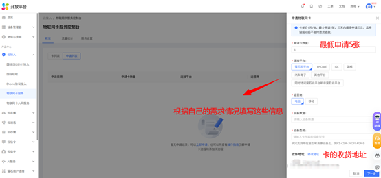 物联网卡需要自己手动申请,单价1元/张,注意:卡到之后才可以使用。
