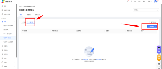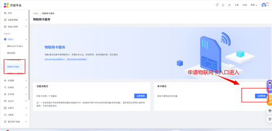 一、申请物联网卡入口:云接入——物联网卡服务——单卡模式