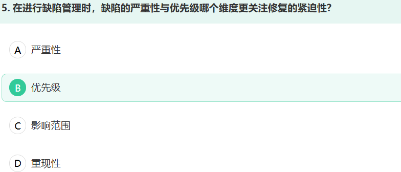 在缺陷管理中,优先级(Priority)维度直接关注修复的紧迫性,因为它指示缺陷修复的紧急程度和顺序;而严重性(Severity)关注缺陷的影响程度,但不一定反映立即修复的需求。影响范围(Scope)和重现性(Reproducibility)是辅助维度,但不直接关注紧迫性。