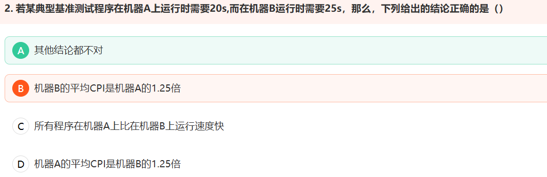 如果时钟频率不同,则无法确定 CPI 关系,所以选 A