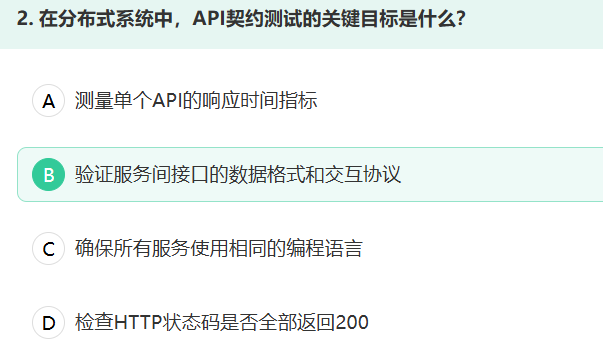 API契约测试的关键目标是确保服务间接口的兼容性,主要验证数据格式和交互协议。