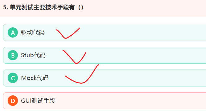 stub:桩函数是代替某些被调用了但是没有编写代码,一般再增量迭代自底向上的过程中不用编写。再自顶向下的过程中需要编写