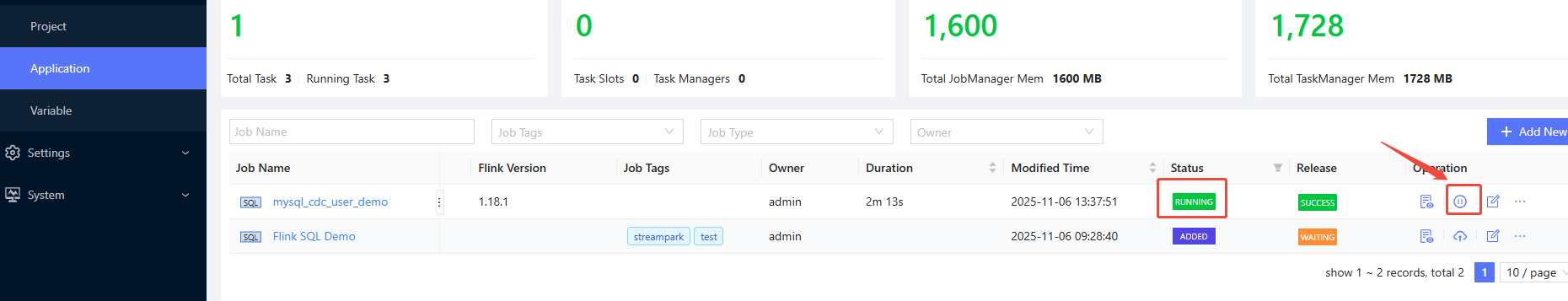 在sreampark中配置Flink SQL任务