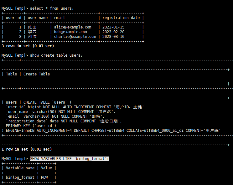 SHOW VARIABLES LIKE 'binlog_format';