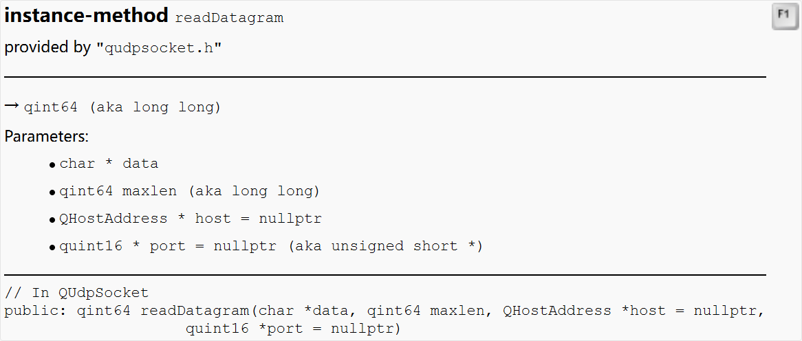 注意到这里的readDatagram函数与TCP编程中的readAll函数多了四个参数。