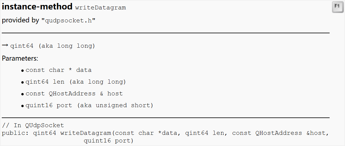 注意到这里的writeDatagram函数与TCP编程中的write函数多了后三个参数。