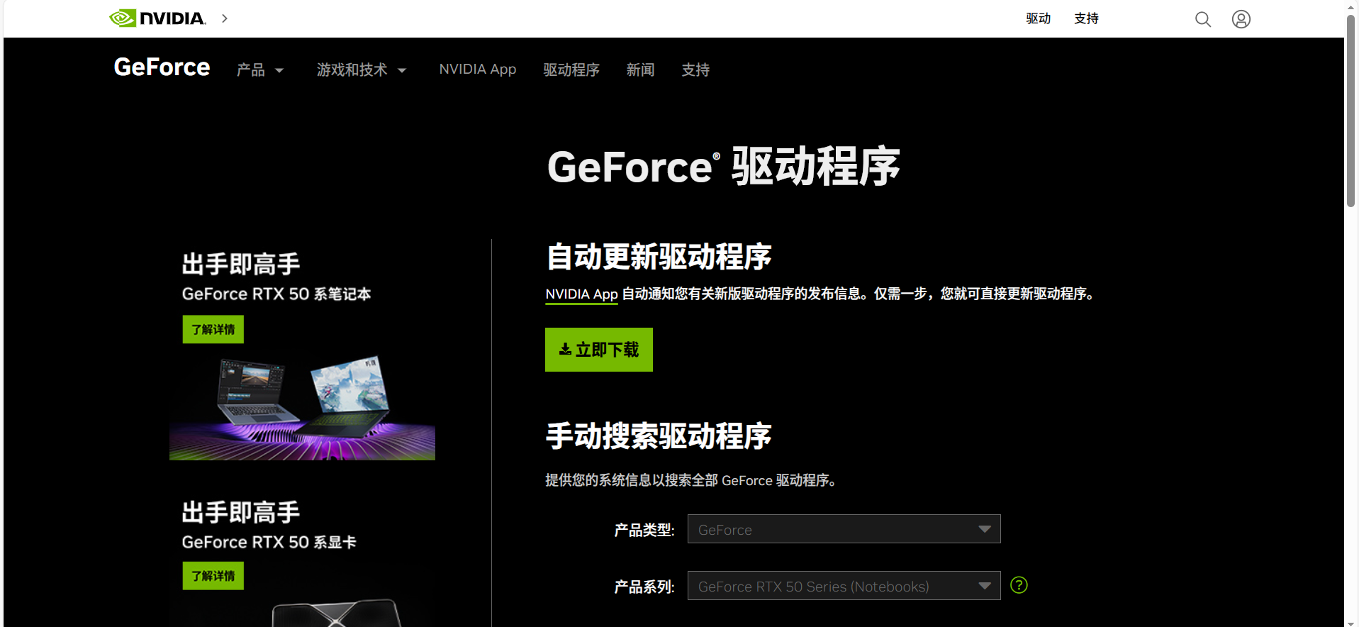根据上述查看到的型号下载电脑对应驱动并安装,官网网址为https://www.nvidia.cn/geforce/drivers/
