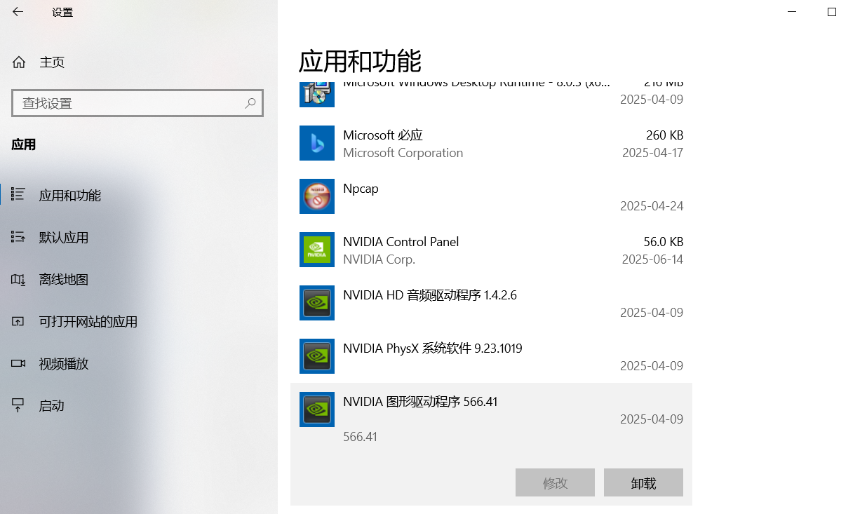 找到设置里的应用,卸载nvidia驱动