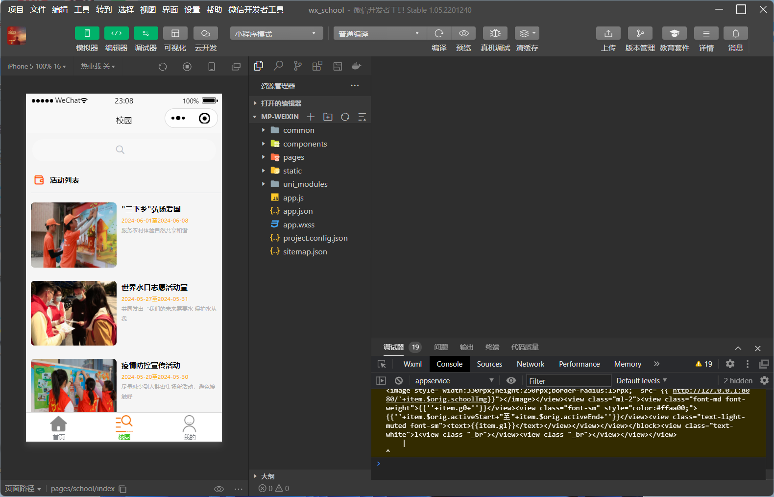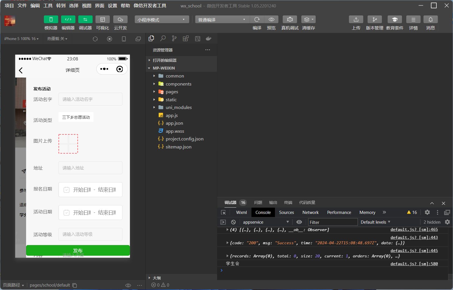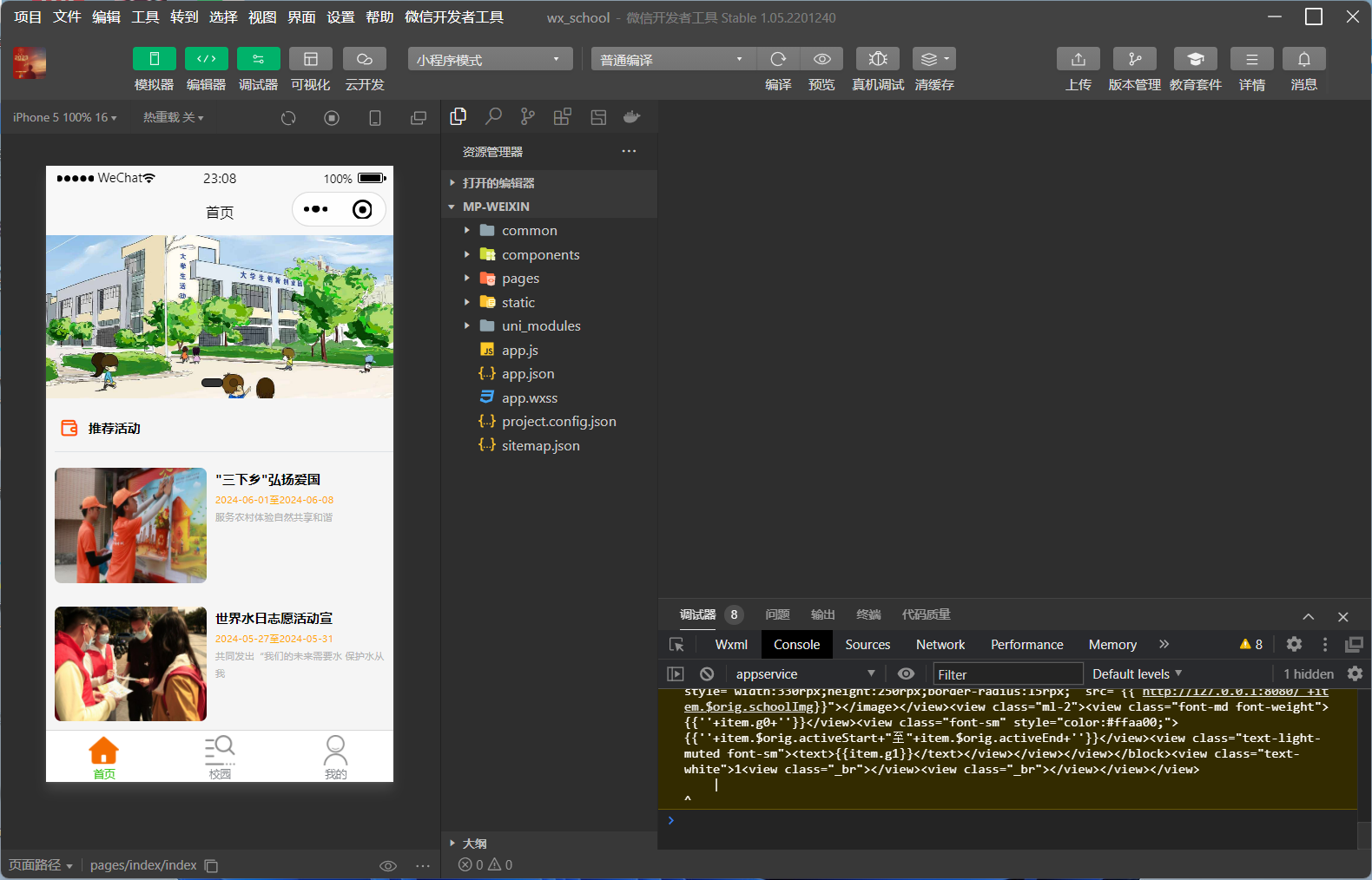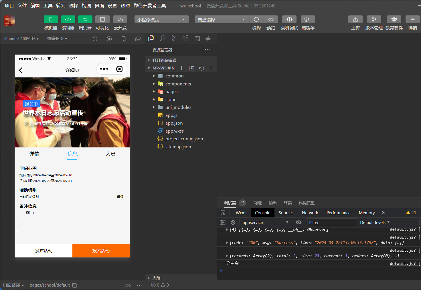登录、注册、首页、推荐活动、轮播图、活动详情、搜索活动、报名活动、发布活动,个人资料、修改密码、参与活动、学分统计、退出账号等等