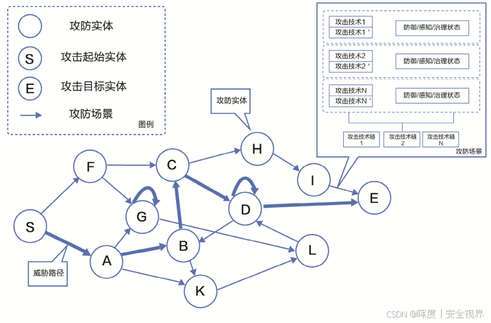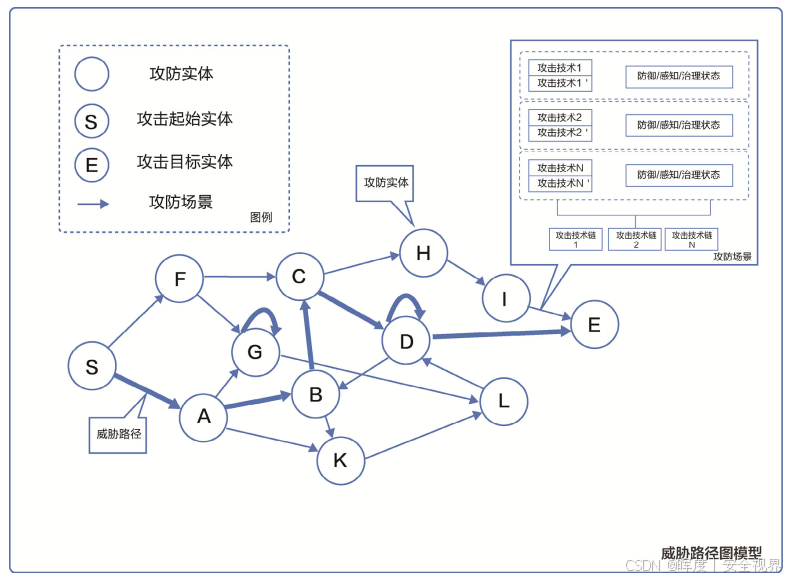 威胁路径图模型是安全水位评估框架的基石。它本质上是一个将攻防能力与企业IT环境深度融合的数字化数据模型。