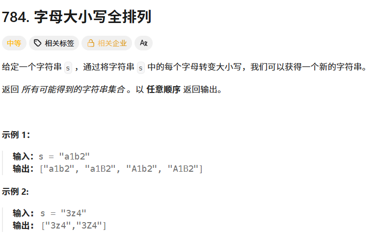给定字符串 s,对字符串中的每个字母(数字不处理)进行「大小写转换」操作(可转也可保留原大小写),生成所有可能得到的不同字符串,最终返回这些字符串的集合(集合内字符串顺序无要求)。