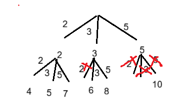 根据决策树,依次从1——n选取数字作为第一个位置,每个元素只能选一次,如果该数字在某个索引位置能满足上面两个条件时,则继续向下递归,当尝试完所有数字后,说明已经找到一个优美的排列。