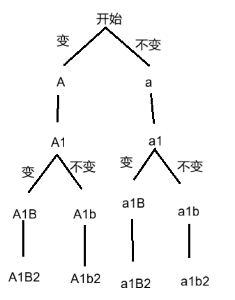 对字符串 s 进行遍历,当遇到的是字母字符时,需要进行大小写转化,并添加到全局变量 StringBuffer letter 中,如果是数字,直接添加。当遍历到字符串的最后一个字符时,递归结束,此时删除最后一个字符进行回溯。