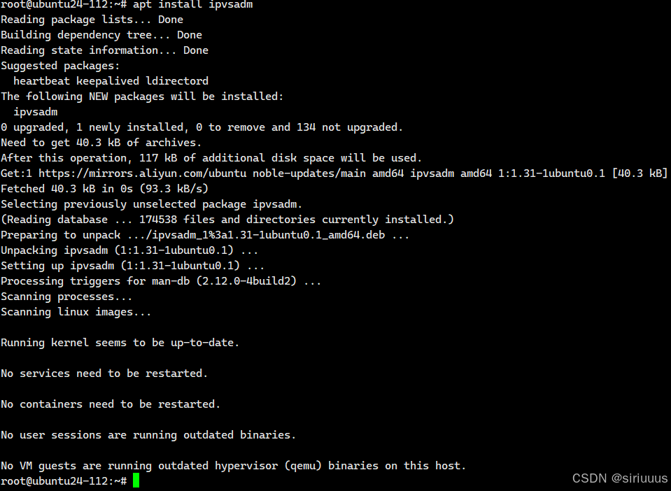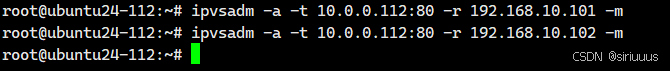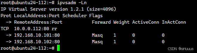 | 2 | lvs-server | ubuntu24-112 | 10.0.0.112 | VIP | nat 模型 | ipvsadm |