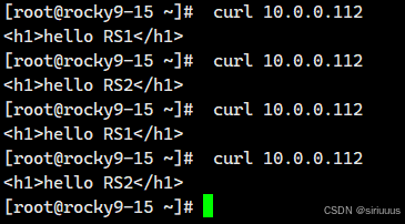在客户端主机 lvs-client上多次访问 lvs-server 的 VIP,观察是否能交替访问到 lvs-rs1 和 lvs-rs2 主机的 Web 页面,验证负载均衡效果。