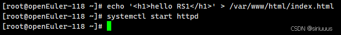 后端 RS1主机部署 http 服务:因为是仅主机网络,所以需要通过本地镜像的方式配置 yum 源并安装 http,定制后端 http 首页;