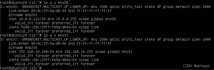 定制网卡配置,ens33 是 NAT 模式,ens37 是仅主机模式,仅主机模式不用配置网关。
