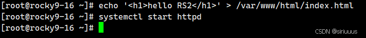 后端 RS2主机部署 http 服务:因为是仅主机网络,所以需要通过本地镜像的方式配置 yum 源并安装 http,定制后端 http 首页。