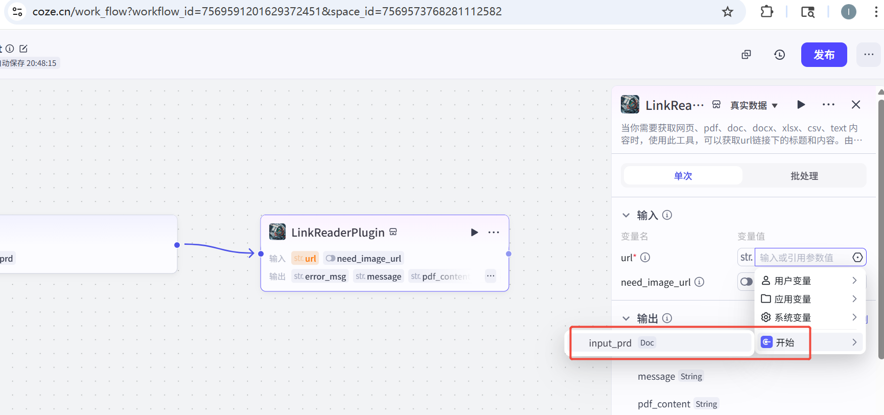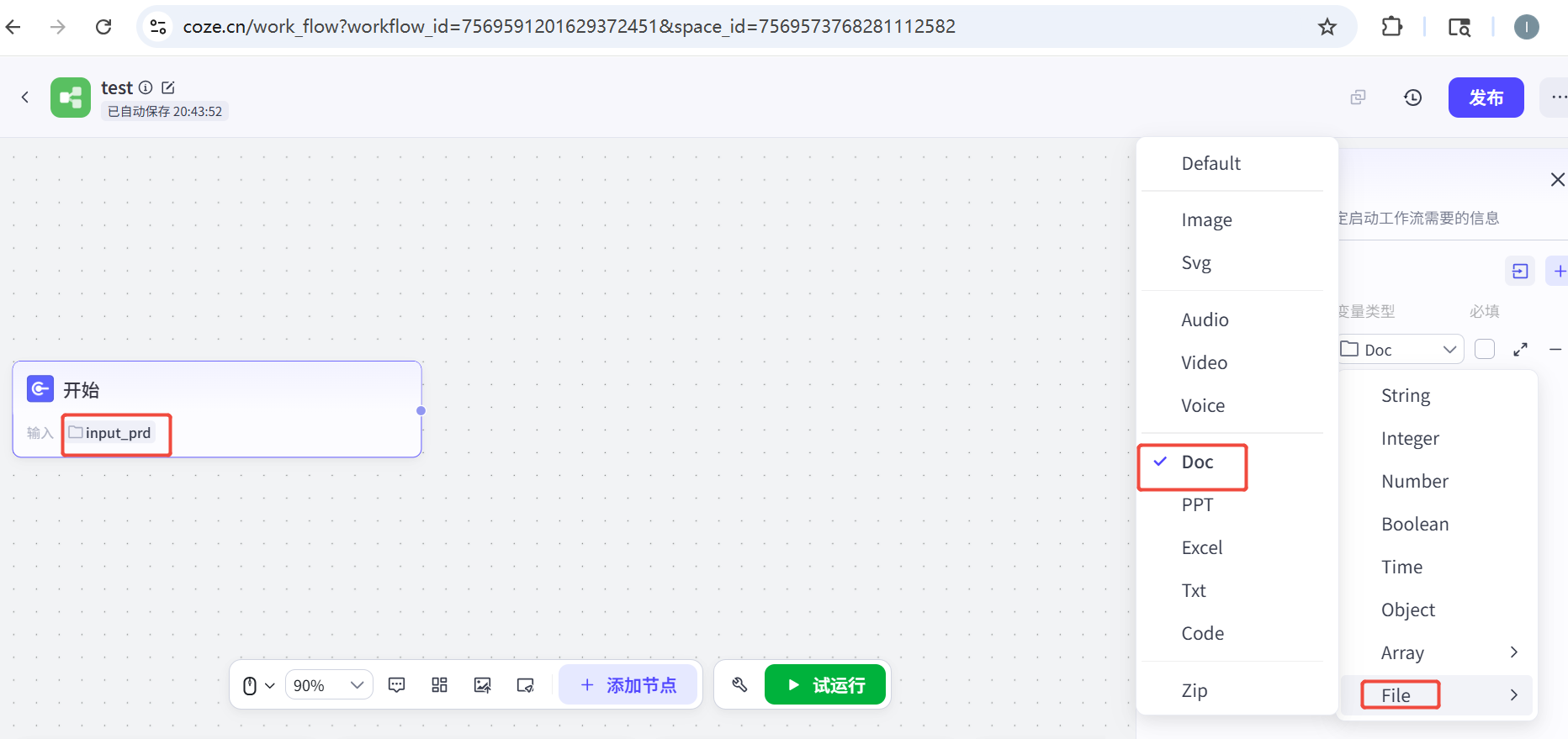 变量类型选择File-Doc,变量名称input_prd,开始节点就OK了