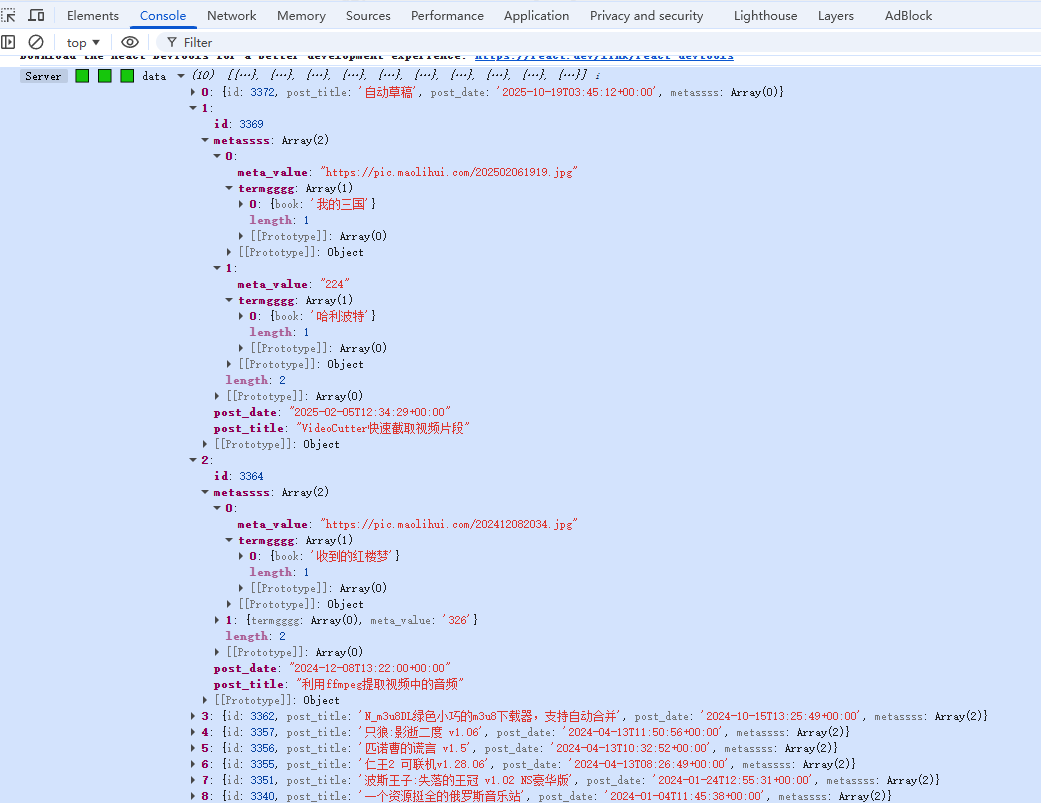 import { createClient } from "@/lib/supabase/client";const supabase = await createClient();const { data, error } = await supabase.from('wp_posts').select(`id,post_title,post_date,metassss:wp_postmeta(meta_key,meta_value)`).eq('post_status', 'publish').eq('wp_postmeta.meta_key', 'thumbnail') // 如果不写,则会查询出所有meta_key.order('post_date', { ascending: false }).limit(10);