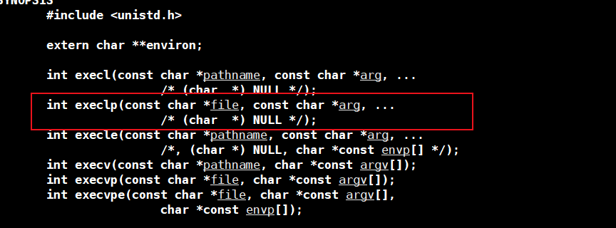 ⏩️第一个参数是:文件名,不用写路径因为 execlp 会自动到环境变量PATH所表明的路径下查找。