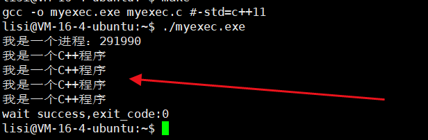 {printf("我是一个进程:%d\n",getpid());pid_t id = fork();if(id == 0)//子进程{//执行另外一个程序的代码execl("./othercmp.exe","othercmp.exe",NULL);}int status = 0;pid_t rid = waitpid(id,&status,0);if(rid > 0){printf("wait success,exit_code:%d\n",WEXITSTATUS(status));}return 0;