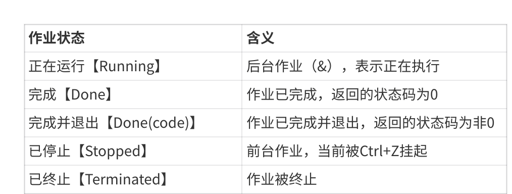 Shell分前后台来控制的不是进程⽽是作业 或者进程组。⼀个前台作业可以由多个进程组成,⼀个后台作业也可以由多个进程组成,Shell可以同时运⾏⼀个前台作业和任意多个后台作业,这称为作业控制。