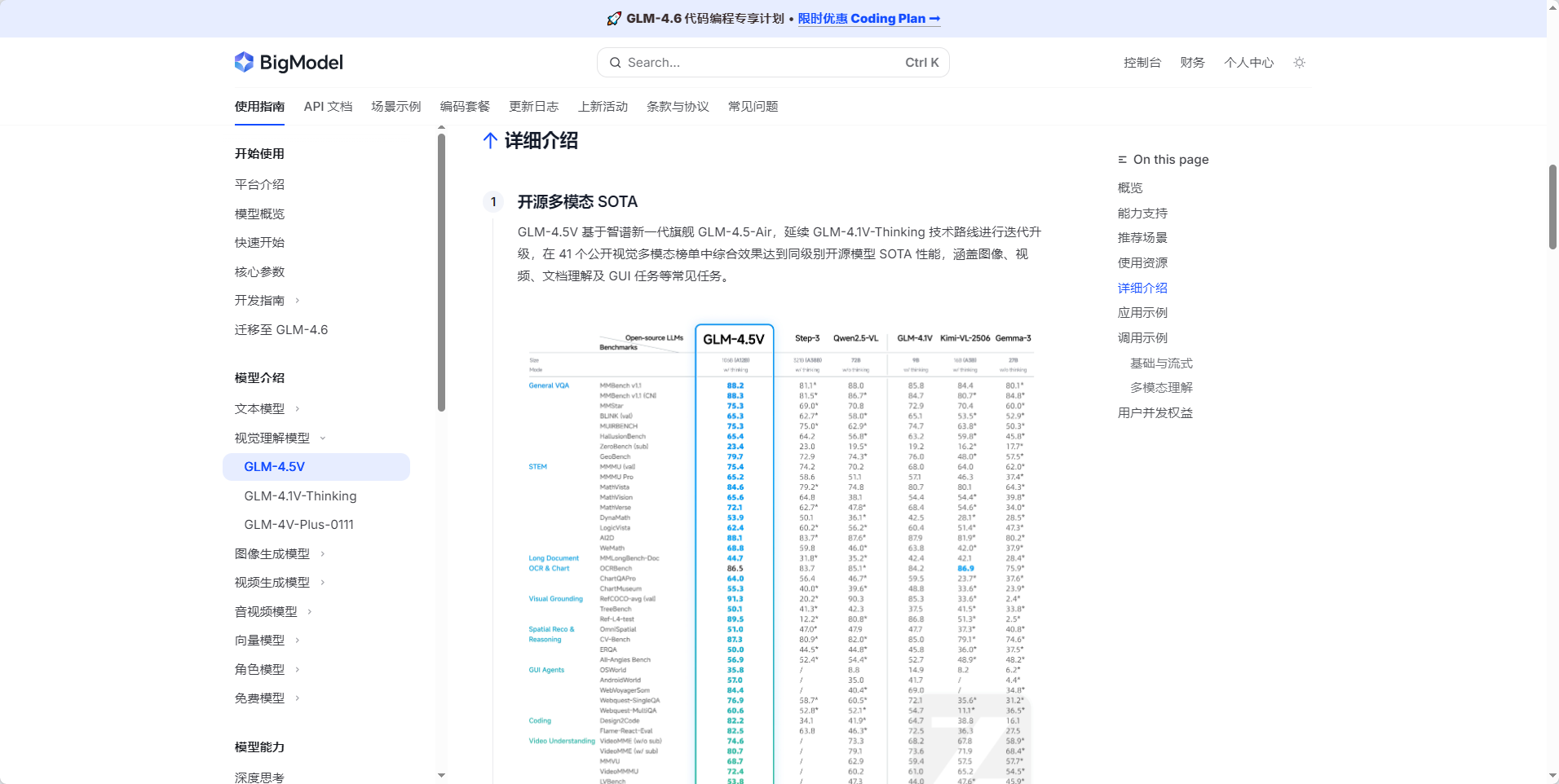 - GLM-4.5V视觉引擎:106B总参数量的MOE架构视觉推理模型,在图像识别、文档理解等任务中达到全球同级别开源多模态模型SOTA水平