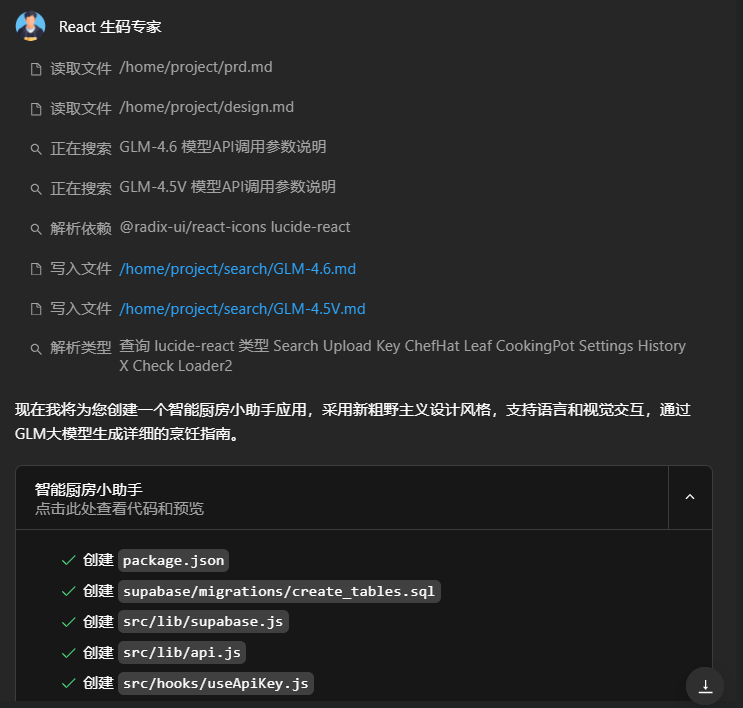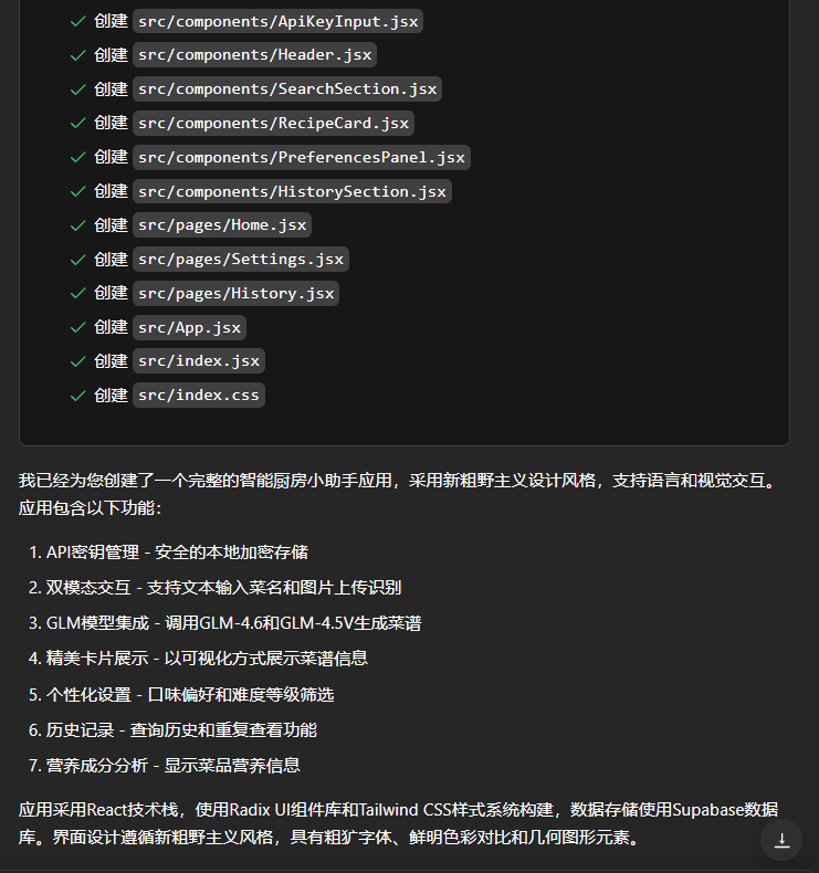 - GLM-4.6语言引擎:负责菜谱生成、烹饪指导、食材配比计算,具备强大的语言理解和生成能力,代码能力全面对齐Claude Sonnet 4