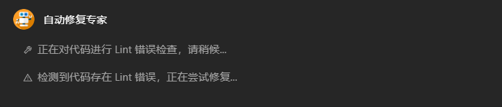 自动修复专家还会对生成的代码进行不断的检查,如果有问题的话会直接修改,保证交付的代码质量。