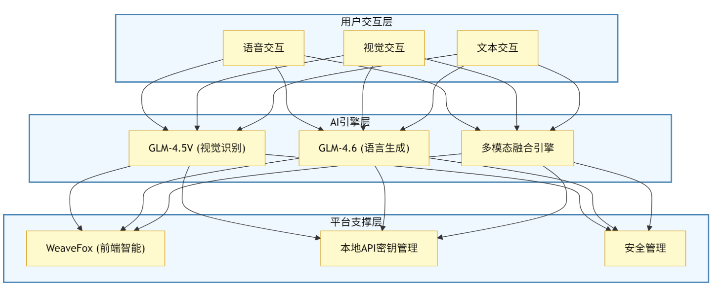 定位:WeaveFox携手GLM大模型打造的新一代智能厨房小助手,定位于成为连接家庭厨房与人工智能技术的桥梁。我们不仅是一个菜谱查询工具,更是用户的私人烹饪导师、食材管家和创意厨房伙伴。通过多模态AI能力,我们致力于解决传统烹饪中的核心痛点:菜谱记忆困难、食材配比不精准、烹饪技巧难掌握、创新菜品缺乏灵感。产品面向现代家庭用户,特别是年轻上班族、新手父母和烹饪爱好者,为他们提供低门槛、高自由度的智能烹饪解决方案,让厨房不再是压力源,而成为创造美食与家庭温暖的空间。