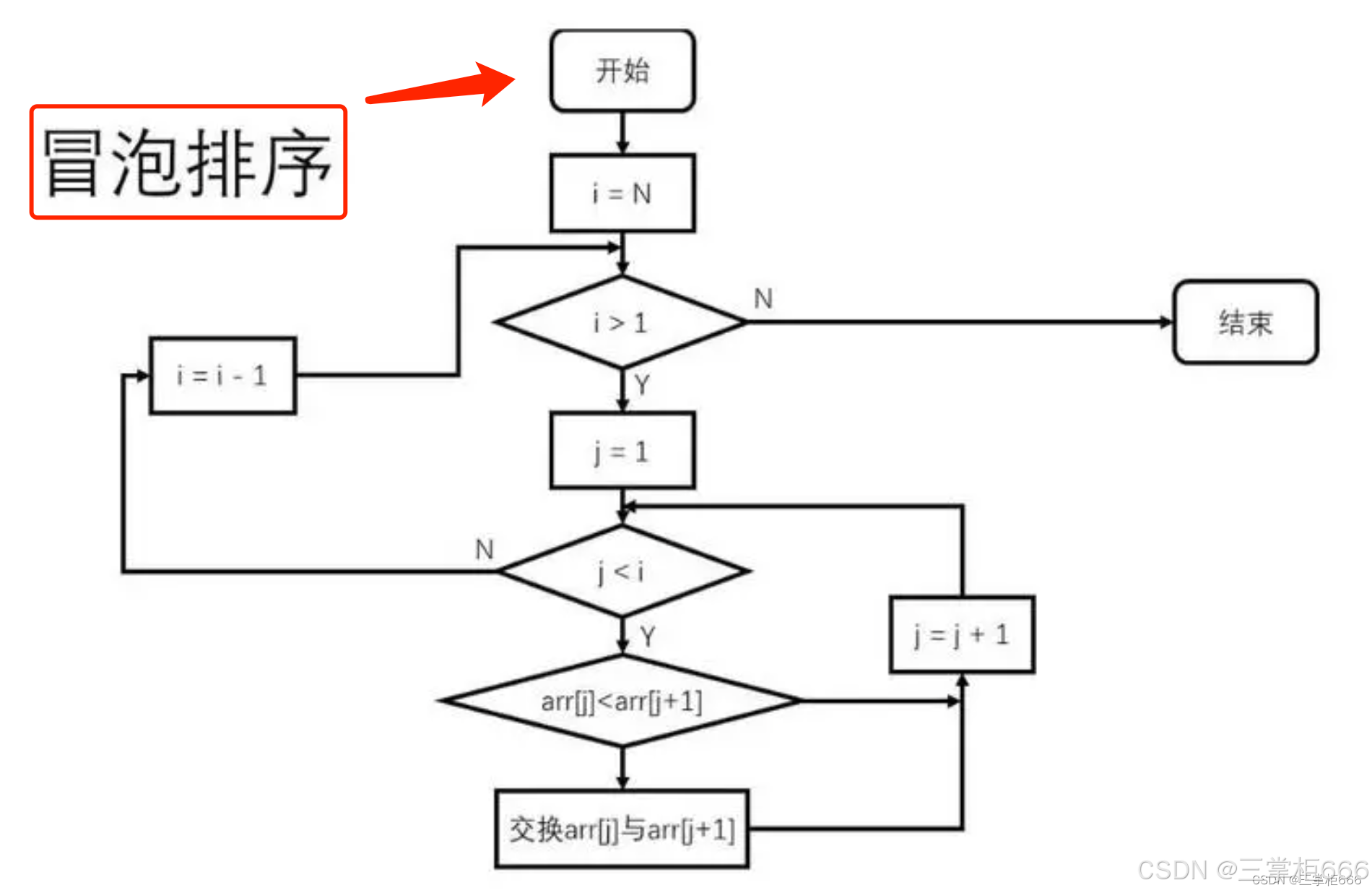 先来介绍一下冒泡排序的核心原理,其实冒泡排序的核心思想可概括为 “多次遍历、相邻比较、逐步冒泡”。通过反复遍历待排序的序列,每次比较相邻的两个元素,如果它们的顺序不符合要求(比如 “从小到大排序” 时前元素大于后元素),则交换它们的位置;每完成一轮遍历,序列中最大(或最小)的元素会像 “气泡” 一样被 “浮” 到序列的末尾(或开头),经过多轮遍历后,整个序列即可完成排序。为更清晰地理解其逻辑,可参考以下流程(以 “从小到大排序” 为例,序列长度为 N):