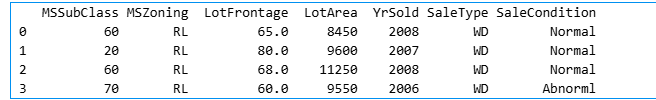 print(all_features.iloc[0:4,[0,1,2,3,-3,-2,-1]])