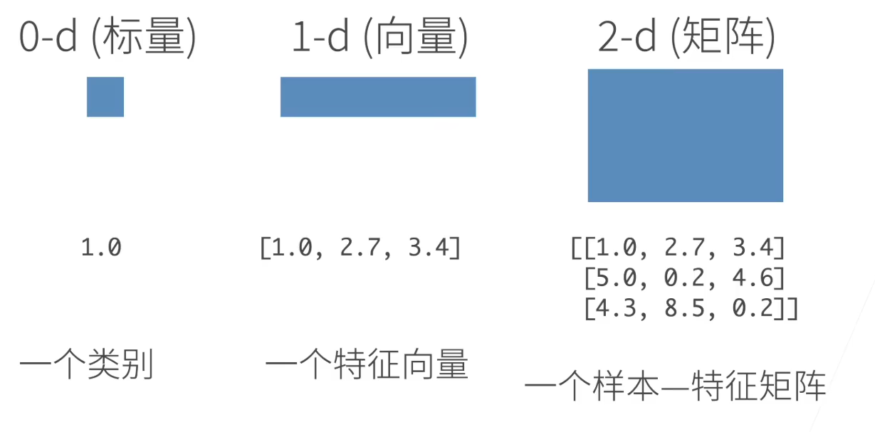 - N=1:向量。一般表示一个样本经过特征化后的特征向量