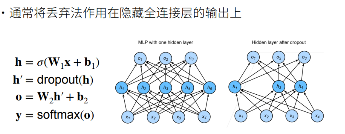 dropout1, dropout2 = 0.2, 0.5class Net(nn.Module):def __init__(self, num_inputs, num_outputs, num_hiddens1, num_hiddens2,is_training=True): super(Net, self).__init__()self.num_inputs = num_inputsself.training = is_trainingself.lin1 = nn.Linear(num_inputs, num_hiddens1)self.lin2 = nn.Linear(num_hiddens1, num_hiddens2)self.lin3 = nn.Linear(num_hiddens2, num_outputs)self.relu = nn.ReLU()def forward(self, X):H1 = self.relu(self.lin1(X.reshape((-1,self.num_inputs))))if self.training == True: # 如果是在训练,则作用dropout,否则则不作用H1 = dropout_layer(H1, dropout1)H2 = self.relu(self.lin2(H1))if self.training == True:H2 = dropout_layer(H2,dropout2)out = self.lin3(H2) # 输出层不作用dropoutreturn outnet = Net(num_inputs, num_outputs, num_hiddens1, num_hiddens2)