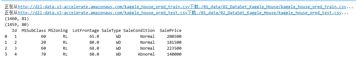 DATA_URL = 'http://d2l-data.s3-accelerate.amazonaws.com/'def download(name, cache_dir=os.path.join('.', '01_data/02_DataSet_Kaggle_House')):"""下载一个DATA_HUB中的文件,返回本地文件名"""assert name in DATA_HUB, f"{name} 不存在于 {DATA_HUB}."url , sha1_hash = DATA_HUB[name]os.makedirs(cache_dir, exist_ok=True)fname = os.path.join(cache_dir, url.split('/')[-1])if os.path.exists(fname):sha1 = hashlib.sha1()with open(fname,'rb') as f:while True:data = f.read(1048576)if not data:breaksha1.update(data)if sha1.hexdigest() == sha1_hash:return fnameprint(f'正在从{url}下载{fname}...')r = requests.get(url,stream=True,verify=True)with open(fname,'wb') as f:f.write(r.content)return fnamedef download_extract(name, folder=None):"""下载并解压zip/tar文件"""fname = download(name)base_dir = os.path.dirname(fname)data_dir, ext = os.path.splitext(fname)if ext == '.zip':fp = zipfile.ZipFile(fname, 'r')elif ext in ('.tar', '.gz'):fp = tarfile.open(fname, 'r')else:assert False, '只有zip/tar文件可以被解压缩'fp,extractall(base_dir)return os.path.join(base_dir, folder) if folder else data_dirdef download_all():"""下载DATA_UHB中的所有文件"""for name in DATA_HUB:download(name)DATA_HUB['kaggle_house_train'] = (DATA_URL + 'kaggle_house_pred_train.csv','585e9cc9370b9160e7921475fbcd7d31219ce')