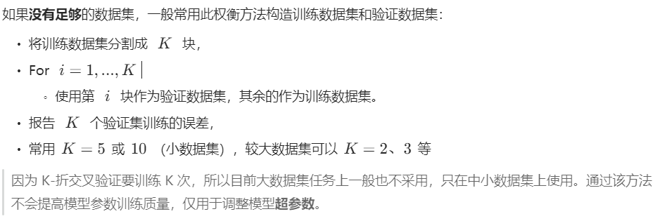 def get_k_fold_data(k,i,X,y): # 给定k折,给定第几折,返回相应的训练集、测试集assert k > 1fold_size = X.shape[0] // k # 每一折的大小为样本数除以kX_train, y_train = None, Nonefor j in range(k): # 每一折idx = slice(j * fold_size, (j+1)*fold_size) # 每一折的切片索引间隔 X_part, y_part = X[idx,:], y[idx] # 把每一折对应部分取出来if j == i: # i表示第几折,把它作为验证集X_valid, y_valid = X_part, y_partelif X_train is None: # 第一次看到X_train,则把它存起来 X_train, y_train = X_part, y_partelse: # 后面再看到,除了第i外,其余折也作为训练数据集,用torch.cat将原先的合并 X_train = torch.cat([X_train, X_part],0)y_train = torch.cat([y_train, y_part],0)return X_train, y_train, X_valid, y_valid # 返回训练集和验证集