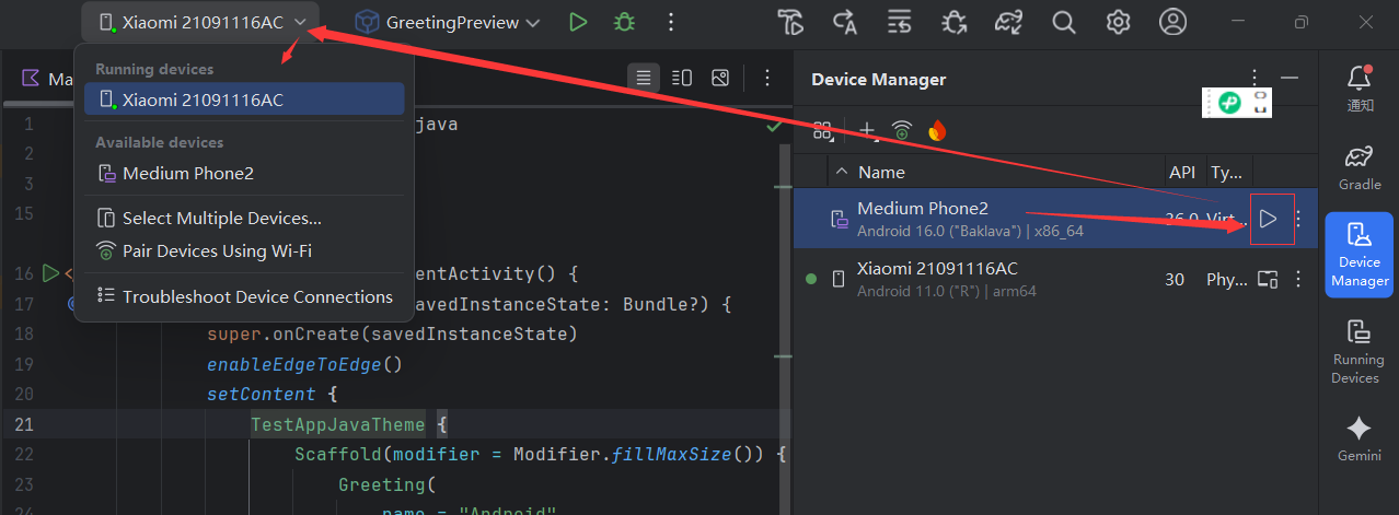 MainActivity.kt:Activity中包含一个setContent { }块,你的Compose UI代码就在这里编写。没有